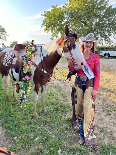 2025 Woodbine Queen Hadley Thomas with her horse Tater. Note of interest, Tater was also ridden by 2011 Woodbine Rodeo Queen, Maggie Thomas.